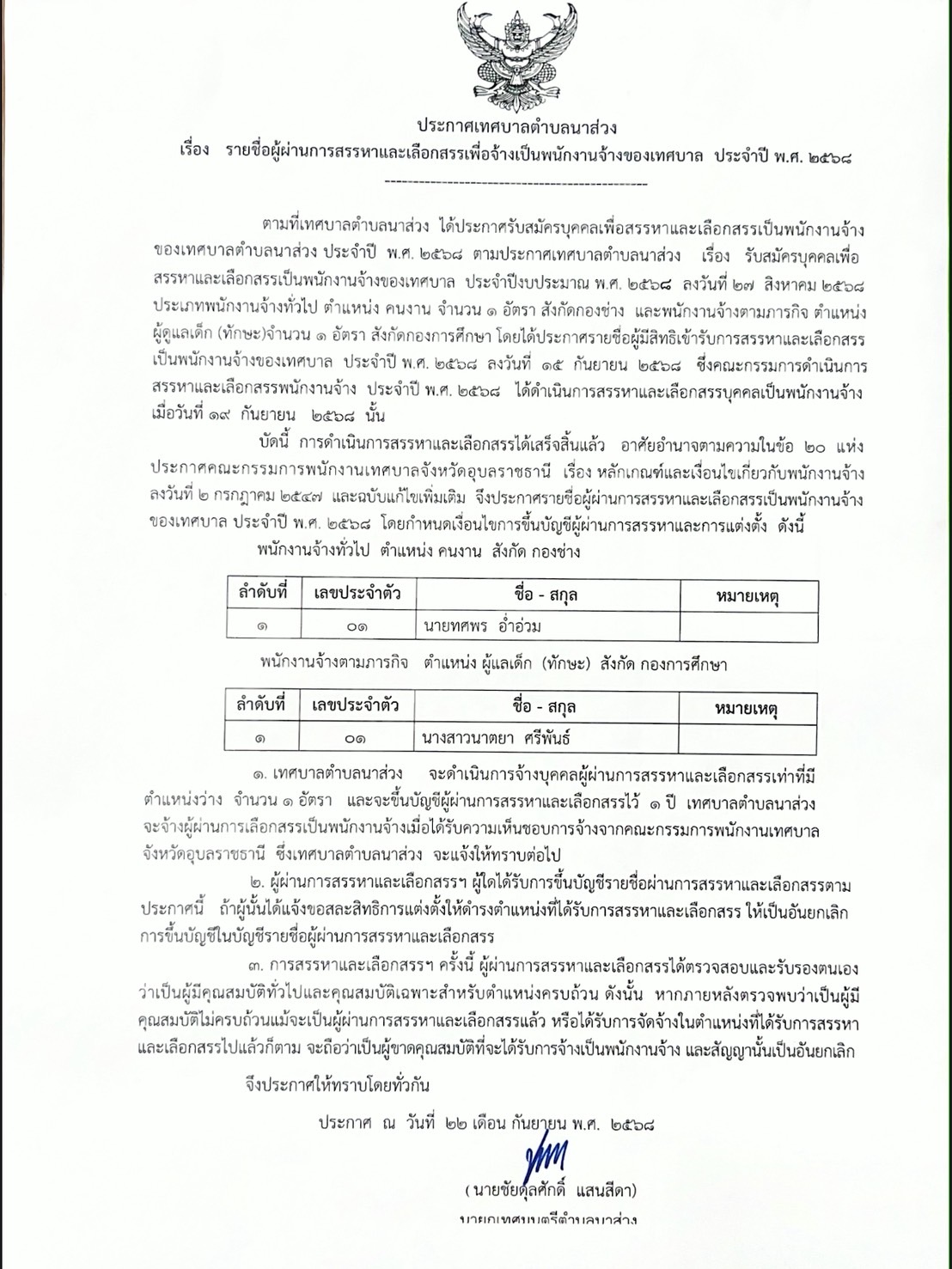 28/04/2568 : ประกาศเทศบาลตำบลนาส่วง เรื่อง การขยายกำหนดเวลาดำเนินการตามพระราชบัญญัติภาษีที่ดินและสิ่งปลูกสร้าง พ.ศ. 2562 ประจำปี 2568