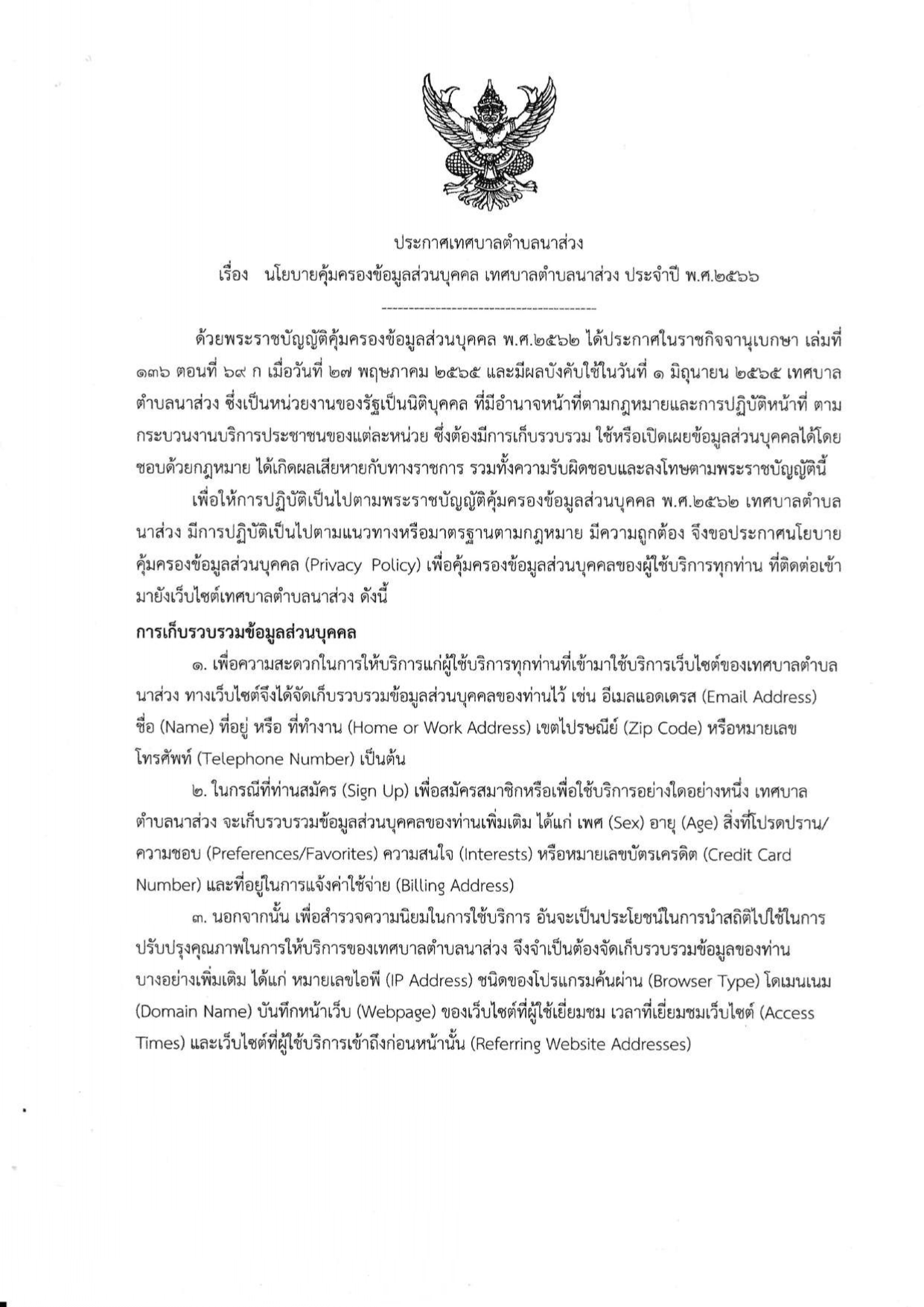 09/12/2569 : ประกาศเทศบาลตำบลนาส่วง เรื่อง ขอให้ตรวจสอบรายการที่ดินและสิ่งปลูกสร้าง ประจำปี 2569